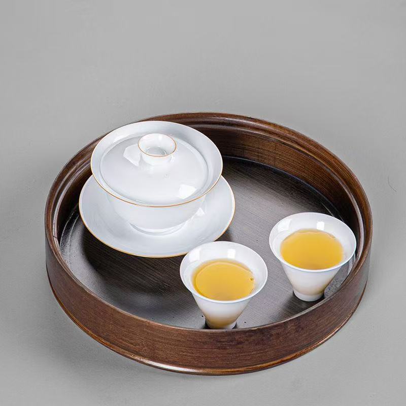 This Round Tea Tray is an exquisite piece of craftsmanship, designed for the ritual of Gongfu tea, a traditional Chinese method of tea preparation that focuses on the aesthetic presentation and sharing. The tray is constructed from high-quality bamboo, a material revered for its durability and natural beauty.