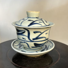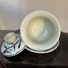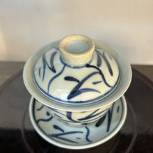 Jingdezhen Wood Ash Glaze "Blue and White" Porcelain, Hand Painting "Tea Leaf & Flower" Gaiwan, Tea Cup. KTM001