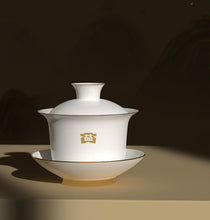 The Gaiwan, with its perfectly sized bowl, lid, and saucer, is expertly crafted for the ritual of steeping and savoring tea, allowing the drinker to appreciate the tea's color, aroma, and flavor. The accompanying cups, with their gentle curves and comfortable hold, are designed to complement the Gaiwan, providing a full sensory experience.