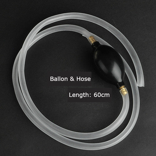 This particular balloon hose has a length of 60cm, providing ample reach from the tea tray to the water receptacle. The presence of a balloon in the setup indicates a manual siphon system, where squeezing the balloon creates pressure to start the flow of water through the hose, effectively draining the tea tray without the need for complex plumbing or electronic devices.