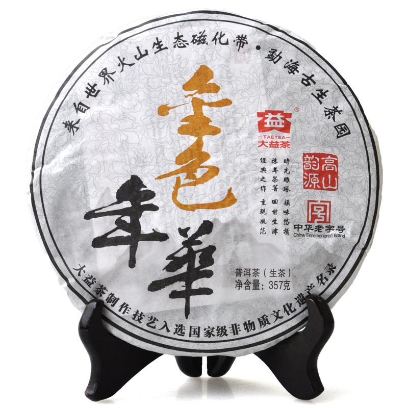 The 2011 DaYi "Jin Se Nian Hua" (Golden Times) Cake is a prestigious offering from the Menghai Tea Factory, a renowned producer in the puerh tea industry. This tea is crafted from selected tea materials that have undergone natural aging in stock for several years before being pressed into cakes. This pre-pressing aging process is crucial in developing the tea’s depth and complexity.