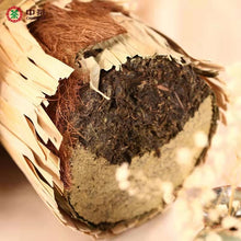 Dry Tea: Encased in traditional bamboo wicker and zongzi leaves, the dry tea pillar is robust and tightly compressed. Its dark brown luster hints at its rich character. A clear, penetrating tea fragrance blends harmoniously with the sweet notes of bamboo and the deep, inviting aroma of aged tea.