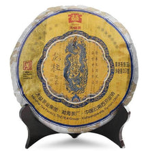 Origination: The "Long Zhu" (Dragon Pillar) Cake is crafted using strictly selected and naturally aged early spring buds and young leaves sourced from organic tea plantations in Menghai. These tea materials undergo a medium fermentation process to develop their unique flavor profile. The tea cake is characterized by its round and thick shape, with noticeable golden hairs, indicating the quality of the tea leaves.