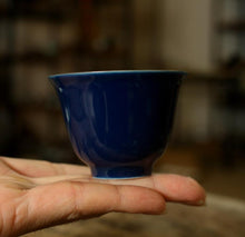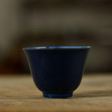The image displays an Ocean Blue Glaze Ceramic "Tea Cup" with a capacity of 55cc, which is part of a set that includes three different patterns. The cup, with its deep blue glaze, has a calming and elegant appearance that is reminiscent of the open sea. The subtle variations in the glaze pattern give each cup a unique character, while the uniform color scheme unites the set in harmony.
